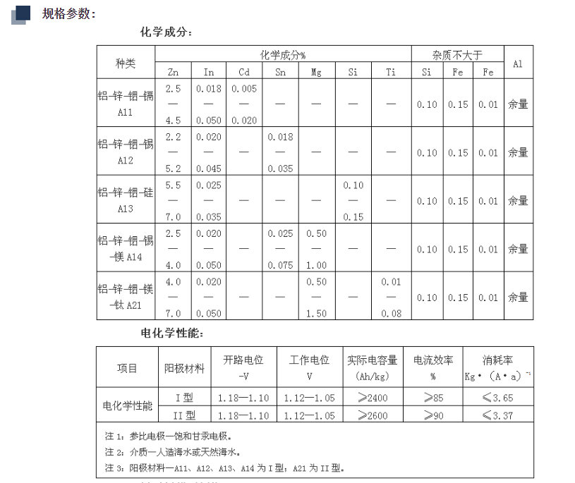 (1)普通鋁合金犧牲陽極;